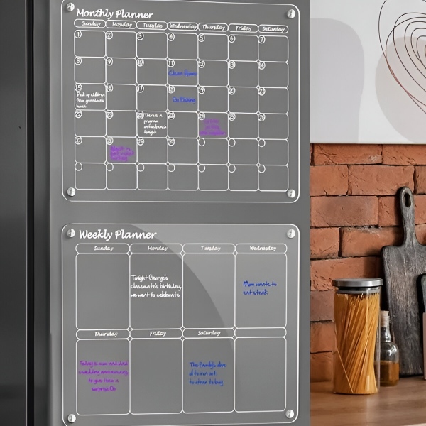 ✏️ Írd fel, töröld le, ismételd – az átlátszó akril felület teljesen letörölhető a mellékelt törlőkendővel, karc- és foltmentes a több éves napi használathoz
