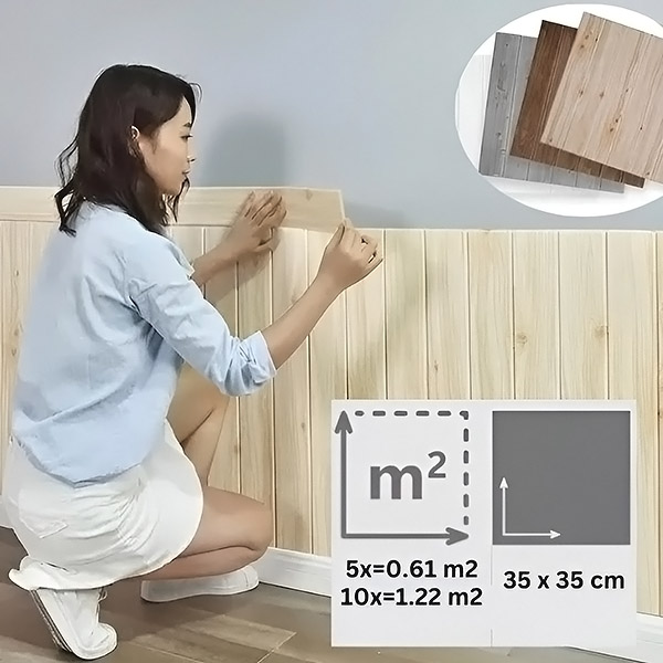 Minden csomag 5 darabot tartalmaz (35×35 cm), amelyek 0,61 m²-t fednek le. Mielőtt elkezdi, számolja ki, hogy hány csomagra lesz szüksége a falfelület alapján. Vásároljon több csomagot nagyobb terekhez, és élvezze a mennyiségi kedvezményeket!