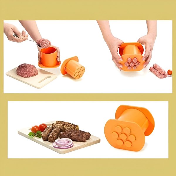 Spóroljon időt és energiát! Ez az eszköz egyetlen préseléssel 7 egyforma kolbászt formáz, amely tökéletesen alkalmas nagy adagok percek alatt történő elkészítéséhez.