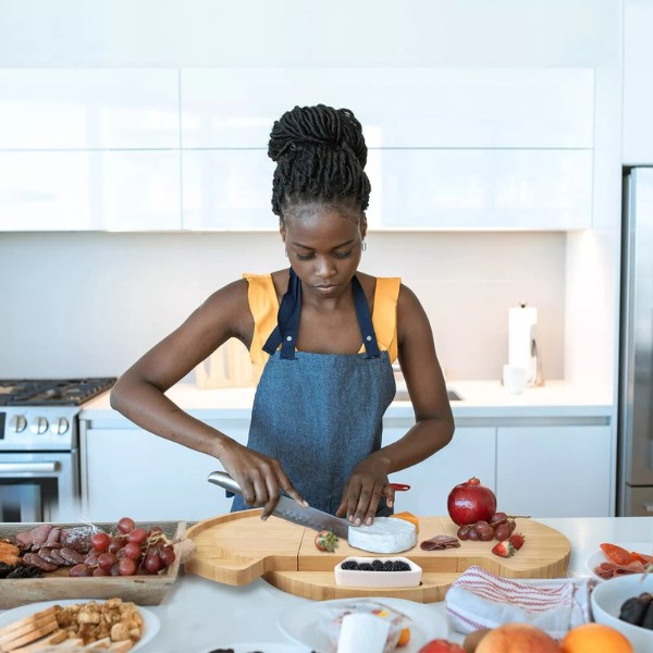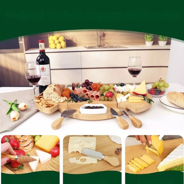 Ez a tálaló nemcsak elegánsan mutatja be a snackeket, hanem vágódeszkaként is szolgál. Sima fa felülete megkönnyíti a szeletelést és a tálalást, így minden kedvenc snackjét egy helyen készítheti el.
