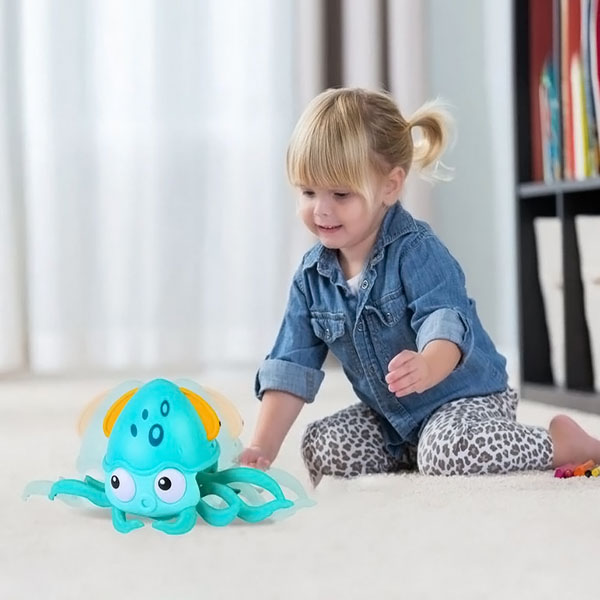 Ez a játékos polip körbe-körbe mászik, arra ösztönözve a babákat, hogy kövessék és fejlesszék motoros készségeiket.