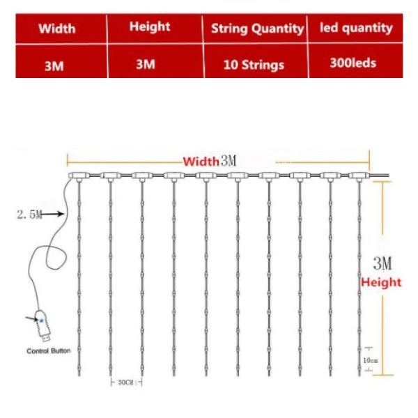 1 x CURLIGHT LED függöny (3 x 3 m) USB csatlakozóval