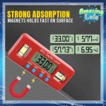ÉRZÉKENY ÉRZÉKELŐ& PONTOS LEOLVASÁS – Az eszköz egy finoman kalibrált érzékelővel rendelkezik, amely képes kezelni a szögméréseket 4×90 ° -os tartományban ± 0,1 ° pontossággal. Használhatja a felületek közötti relatív dőlés meghatározásához.. Megadhatja az abszolút hajlamot is. Található benne két buborék szint , az egyik keresztirányú vízszintes és egy függőleges vízszintes.