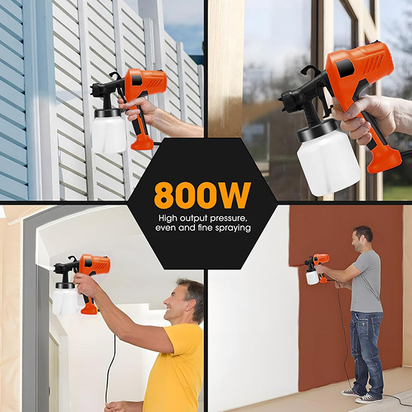 Töltse fel a 800 ml-es tartályt, csavarja rá, és kezdje el a festést – a beállítás kevesebb mint 60 másodpercet vesz igénybe. Nincs alapozás, nincs festékhígítás, nincs extra felszerelés, amit meg kellene venni. A 2,5 mm-es fúvóka egyenletes, állítható áramlást biztosít, így az első vonástól az utolsóig megőrzi az irányítást.