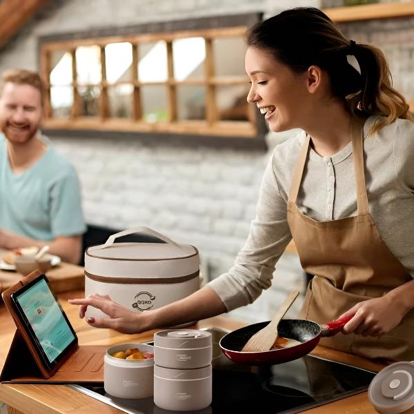 Élvezze a meleg házi készítésű ételeket bárhol, ahol csak jár ezzel a többrétegű ételszállitó készlettel.