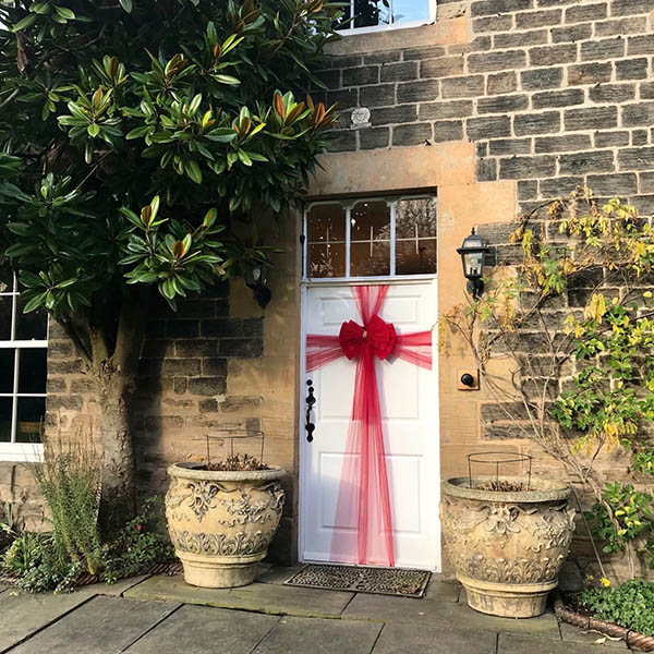 Öltöztesse fel ajtaját luxus masnidíszeinkkel. A 750 cm hosszú szalaggal formázható és gyönyörű ünnepi átalakítást adhat a bejárati ajtónak. Legyen szó Karácsonyról, esküvőről vagy babaváróról, a RUBYBOW fokozza az ünnepet.
