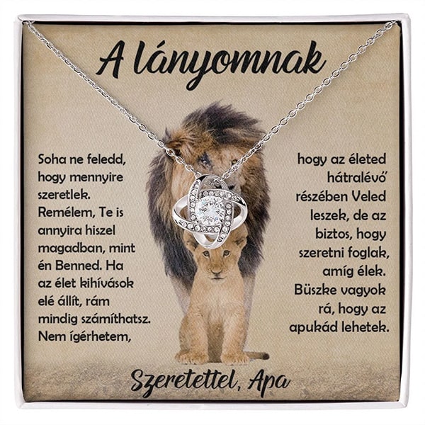 Exkluzív kártya üzenettel: A lányomnak – Soha ne feledd, hogy mennyire szeretlek. Remélem, Te is annyira hiszel magadban, mint én Benned. Ha az élet kihívások elé állít, rám mindig számíthatsz. Nem ígérhetem, hogy az életed hátralévő részében Veled leszek, de az biztos, hogy szeretni foglak, amíg élek. Büszke vagyok rá, hogy az apukád lehetek. Szeretettel: Apa