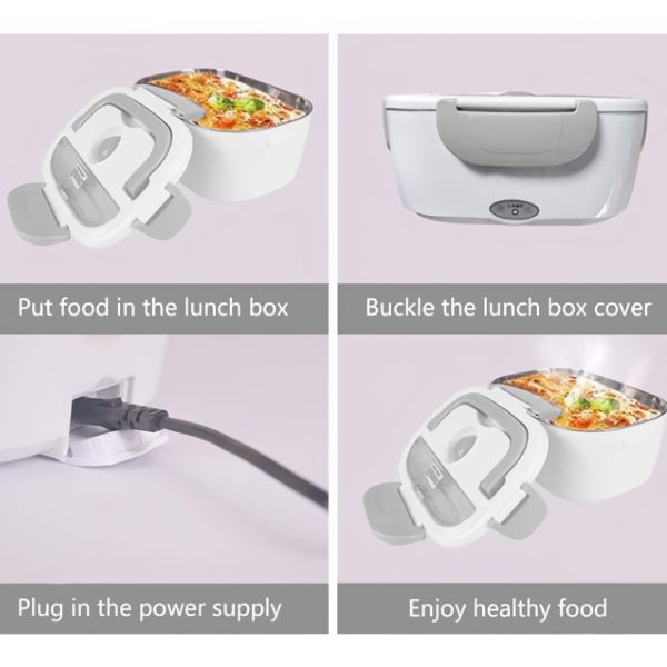A 2 kivehető PP rekesz külön tartja a főételt és a köretet – utána pedig mindkettő egyenesen a mosogatógépbe mehet. Működik az irodában, az autóban, egy építkezésen, vagy bármelyik szobában, ahol van konnektor.