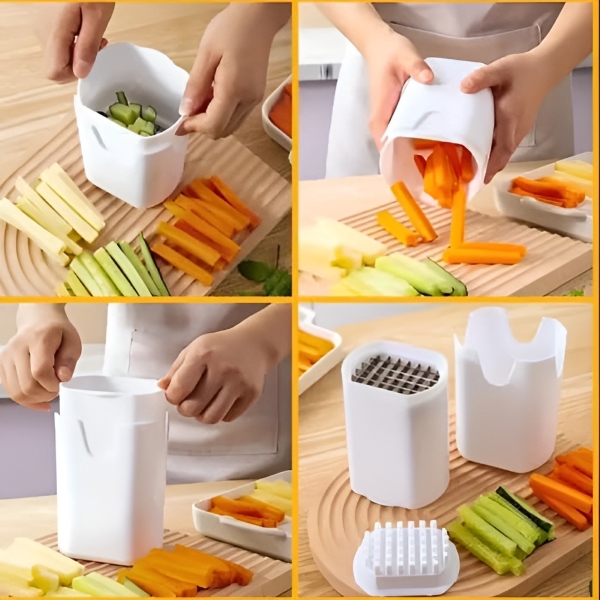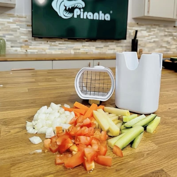A CHOPZY konyhai eszköz nemcsak hasábburgonya készítésére alkalmas; egy sokoldalú zöldségaprító, amely különféle alapanyagokat, például répát, uborkát és hagymát is könnyedén feldolgoz, megkönnyítve az ételkészítést.