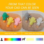 Ez a játék élénk sárga színt használ, mivel ez azon kevés színek egyike, amelyet a kutyák tisztán látnak.