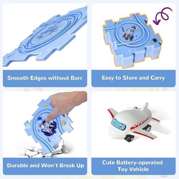 A pályák összerakása segít fejleszteni a szem-kéz koordinációt, és megtanítja a gyerekeknek az alapvető térbeli és logikai gondolkodási fogalmakat.
