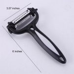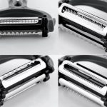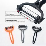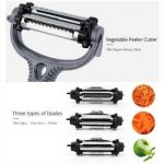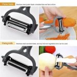 A Rotációs hámozó reszelő egy többfunkciós hámozó, 360 fokban forgatható pengékkel. Háromféle pengével rendelkezik, amelyek különféle formákba reszelhetik az ételt. Bármikor válthat a pengék közt a hámozáshoz, a szeleteléshez és a tervezéshez. Ezen túlmenően, éles és domború oldala felhasználható gyümölcs, például narancs héjának meghámozására. Ez a hámozó reszelő kiváló minőségű rozsdamentes acélból készül, amely tartós, éles és nem rozsdásokdik. Az ABS fogantyú kialakítása miatt nem törik el könnyen, de könnyen kezelhető és könnyű a súlya.