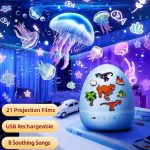 Távolítsd el a lámpatetőt, hogy felfedd a nagy felbontású kivetítőt, amely lenyűgöző képeket vetít, például dinoszauruszokat, csillagokat és sellőket, varázslatos hangulatot teremtve.