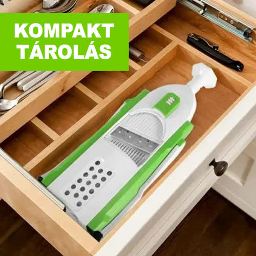 Az összecsukható kialakítással helyet takaríthat meg, így bármilyen méretű konyhába tökéletes. Emellett lehetővé teszi a különböző formájú gyümölcsök és zöldségek gyors és biztonságos elkészítését!